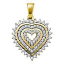 Description 10kt Yellow Gold Women's Round Diamond Concentric Heart Pendant 1/3 Cttw Gemstone Details 1/3 Carats total weight Specifications 10kt Yellow Gold Combined diamond weight of 1/3 carats total weight represents a range of 0.30 - 0.36 cts. t.w.