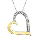 Description 10kt Yellow Gold Women's Round Diamond Heart Outline Pendant 1/10 Cttw Gemstone Details 1/10 Carats total weight Specifications 10kt Yellow Gold Combined diamond weight of 1/10 carats total weight represents a range of 0.09 - 0.11 cts. t.w.