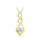 Description 10kt Yellow Gold Women's Round Diamond Infinity Pendant 1/10 Cttw Gemstone Details 1/10 Carats total weight Specifications 10kt Yellow Gold Combined diamond weight of 1/10 carats total weight represents a range of 0.09 - 0.11 cts. t.w.
