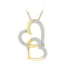 Description 10kt Yellow Gold Women's Round Diamond Linked Double Heart Pendant 1/10 Cttw Gemstone Details 1/10 Carats total weight Specifications 10kt Yellow Gold Combined diamond weight of 1/10 carats total weight represents a range of 0.09 - 0.11 cts. t.w.