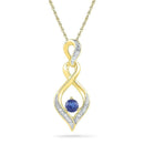 10kt Yellow Gold Women's Round Lab-Created Blue Sapphire Solitaire Diamond Pendant .02 Cttw - FREE Shipping (US/CAN)