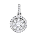 Description 14kt White Gold Women's Round Diamond Frame Flower Cluster Pendant 7/8 Cttw Gemstone Details 7/8 Carats total weight Specifications 14kt White Gold Combined diamond weight of 7/8 carats total weight represents a range of 0.83 - 0.94 cts. t.w.