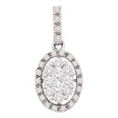 Description 14kt White Gold Women's Round Diamond Oval Cluster Pendant 1/2 Cttw Gemstone Details 1/2 Carats total weight Specifications 14kt White Gold Combined diamond weight of 1/2 carats total weight represents a range of 0.46 - 0.58 cts. t.w.