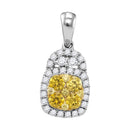 Description 14kt White Gold Women's Round Yellow Diamond Cluster Pendant 3/4 Cttw Gemstone Details 3/4 Carats total weight Specifications 14kt White Gold All colored diamonds are treated to permanently alter their appearance. Combined diamond weight of 3/4 carats total weight represents a range of 0.71 - 0.82 cts. t.w.