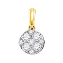 Description 14kt Yellow Gold Women's Round Diamond Cluster Pendant 1/2 Cttw Gemstone Details 1/2 Carats total weight Specifications 14kt Yellow Gold Combined diamond weight of 1/2 carats total weight represents a range of 0.46 - 0.58 cts. t.w.