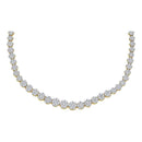 Description 14kt Yellow Gold Women's Round Diamond Flower Cluster Luxury Necklace 10 Cttw Gemstone Details 10.00 Carats total weight Specifications 14kt Yellow Gold Combined diamond weight of 10.00 carats total weight represents a range of 9.95 - 10.05 cts. t.w.