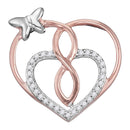 Description Rose-tone Sterling Silver Womens Round Diamond Heart Butterfly Pendant 1/10 Cttw Gemstone Details 1/10 Carats total weight Specifications Sterling Silver �Combined diamond weight of 1/10 carats total weight represents a range of 0.09 - 0.11 cts. t.w.