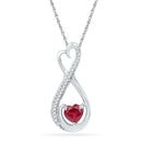 Description Sterling Silver Womens Heart Lab-Created Ruby Solitaire Diamond Infinity Heart Pendant 5/8 Cttw Gemstone Details 5/8 Carats total weight --- 5/8 carat center solitaire Specifications Sterling Silver �Combined gemstone weight of 5/8 carats total weight represents a range of 0.59 - 0.70 cts. t.w.