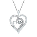 Description Sterling Silver Womens Round Diamond Heart Moving Twinkle Pendant .03 Cttw Gemstone Details .03 Carats total weight Specifications Sterling Silver