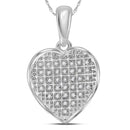 Description Sterling Silver Women's Round Diamond Heart Pendant 1/10 Cttw Gemstone Details 1/10 Carats total weight Specifications Sterling Silver Combined diamond weight of 1/10 carats total weight represents a range of 0.09 - 0.11 cts. t.w.