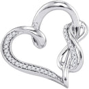Description Sterling Silver Women's Round Diamond Linked Infinity Heart Pendant 1/8 Cttw Gemstone Details 1/8 Carats total weight Specifications Sterling Silver Combined diamond weight of 1/8 carats total weight represents a range of 0.12 - 0.14 cts. t.w.