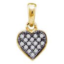 Description Yellow-tone Sterling Silver Women's Round Diamond Small Heart Cluster Pendant 1/20 Cttw Gemstone Details 1/20 Carats total weight Specifications Sterling Silver Combined diamond weight of 1/20 carats total weight represents a range of 0.04 - 0.06 cts. t.w.