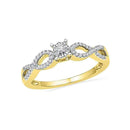 Description 10kt Yellow Gold Women's Round Diamond Solitaire Twist Promise Bridal Ring 1/6 Cttw Gemstone Details 1/6 Carats total weight --- .02 carat center solitaire Specifications 10kt Yellow Gold