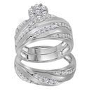 Description 10kt White Gold His & Hers Round Diamond Cluster Matching Bridal Wedding Ring Band Set 1-1/10 Cttw Gemstone Details 1 & 1/10 Carats total weight Specifications 10kt White Gold íÂCombined diamond weight of 1 & 1/10 carats total weight represents a range of 1.09 - 1.11 cts. t.w.