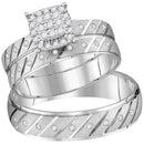 Description 14kt White Gold His & Hers Round Diamond Cluster Matching Bridal Wedding Ring Band Set 1/3 Cttw Gemstone Details 1/3 Carats total weight Specifications 14kt White Gold _Combined diamond weight of 1/3 carats total weight represents a range of 0.30 - 0.36 cts. t.w.