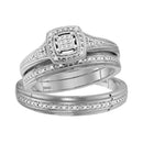 Description 10kt White Gold His & Hers Round Diamond Cluster Matching Bridal Wedding Ring Band Set 1/10 Cttw Gemstone Details 1/10 Carats total weight Specifications 10kt White Gold _Combined diamond weight of 1/10 carats total weight represents a range of 0.09 - 0.11 cts. t.w.