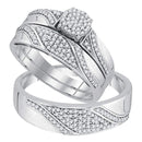 Description 10kt White Gold His & Hers Round Diamond Cluster Matching Bridal Wedding Ring Band Set 1/2 Cttw Gemstone Details 1/2 Carats total weight Specifications 10kt White Gold _Combined diamond weight of 1/2 carats total weight represents a range of 0.46 - 0.58 cts. t.w.