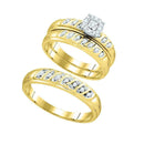 10k Yellow Gold Round Diamond Matching Trio Mens Womens Wedding Bridal Ring Set 1/3 Cttw