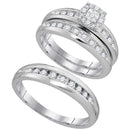 Description 10kt White Gold His & Hers Round Diamond Cluster Matching Bridal Wedding Ring Band Set 3/8 Cttw Gemstone Details 3/8 Carats total weight Specifications 10kt White Gold _Combined diamond weight of 3/8 carats total weight represents a range of 0.37 - 0.45 cts. t.w.
