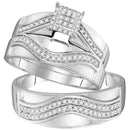 Description 10kt White Gold His & Hers Round Diamond Cluster Matching Bridal Wedding Ring Band Set 3/8 Cttw Gemstone Details 3/8 Carats total weight Specifications 10kt White Gold Combined diamond weight of 3/8 carats total weight represents a range of 0.37 - 0.45 cts. t.w.