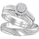 Sterling Silver His & Hers Round Diamond Cluster Matching Bridal Wedding Ring Band Set 1/4 Cttw - FREE Shipping (US/CAN)