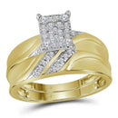 10k Yellow Gold Diamond Cluster Matching Trio His & Hers Wedding Ring Band Set 1/3 Cttw