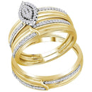 10k Yellow Gold Diamond His & Hers Matching Trio Wedding Engagement Bridal Ring Set 1/3 Cttw