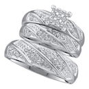 Description 14kt White Gold His & Hers Round Diamond Cluster Matching Bridal Wedding Ring Band Set 1/4 Cttw Gemstone Details 1/4 Carats total weight Specifications 14kt White Gold _Combined diamond weight of 1/4 carats total weight represents a range of 0.23 - 0.29 cts. t.w.