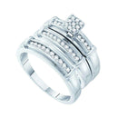Description 14kt White Gold His & Hers Round Diamond Cluster Matching Bridal Wedding Ring Band Set 3/8 Cttw Gemstone Details 3/8 Carats total weight Specifications 14kt White Gold Combined diamond weight of 3/8 carats total weight represents a range of 0.37 - 0.45 cts. t.w.