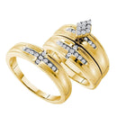 Description 14kt Yellow Gold His & Hers Round Diamond Cluster Matching Bridal Wedding Ring Band Set 1/3 Cttw Gemstone Details 1/3 Carats total weight Specifications 14kt Yellow Gold Combined diamond weight of 1/3 carats total weight represents a range of 0.30 - 0.36 cts. t.w.
