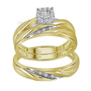 Description 10kt Yellow Gold His & Hers Round Diamond Solitaire Matching Bridal Wedding Ring Band Set 1/8 Cttw Gemstone Details 1/8 Carats total weight Specifications 10kt Yellow Gold Combined diamond weight of 1/8 carats total weight represents a range of 0.12 - 0.14 cts. t.w.