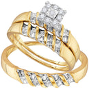 Description Sterling Silver Diamond Yellow-tone His & Hers Matching Trio Wedding Engagement Ring Set 1/7 Cttw Gemstone Details 1/8 Carats total weight Specifications 10kt Yellow Gold Combined diamond weight of 1/8 carats total weight represents a range of 0.12 - 0.14 cts. t.w.