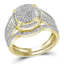 Description 10kt Yellow Gold Womens Round Diamond Cluster Bridal Wedding Engagement Ring Band Set 1/2 Cttw Gemstone Details 1/2 Carats total weight Specifications 10kt Yellow Gold �Combined diamond weight of 1/2 carats total weight represents a range of 0.46 - 0.58 cts. t.w.