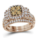 Description 14kt Rose Gold Women's Round Brown Diamond Cluster Bridal Wedding Engagement Ring Band Set 1.00 Cttw Gemstone Details 1.00 Carats total weight Specifications 14kt Rose Gold All colored diamonds are treated to permanently alter their appearance. Combined diamond weight of 1.00 carats total weight represents a range of 0.95 - 1.05 cts. t.w.