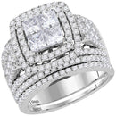 14kt White Gold Women's Princess Diamond Cluster Halo Bridal Wedding Engagement Ring Band Set 3.00 Cttw - FREE Shipping (US/CAN)