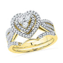 10kt Yellow Gold Women's Round Diamond Heart Bridal Wedding Engagement Ring Band Set 5/8 Cttw - FREE Shipping (US/CAN)