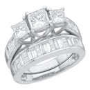 14kt White Gold Women's Princess 3-Stone Diamond Bridal Wedding Engagement Ring Band Set 2-1/2 Cttw - FREE Shipping (US/CAN)