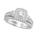 Description 14kt White Gold Women's Round Diamond Square Halo Bridal Wedding Engagement Ring Band Set 1.00 Cttw Gemstone Details 1.00 Carats total weight --- 1/3 carat center solitaire Specifications 14kt White Gold _Combined diamond weight of 1.00 carats total weight represents a range of 0.95 - 1.05 cts. t.w.