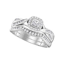 10k White Gold Women's Princess Diamond Halo Bridal Wedding Engagement Ring Band Set 1/2 Cttw