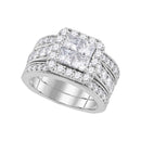 Description 14k White Gold Women's Princess Diamond Halo Bridal Wedding Engagement Ring Band Set 3.00 Cttw Gemstone Details 3.00 Carats total weight Specifications 14kt White Gold _Combined diamond weight of 3.00 carats total weight represents a range of 2.95 - 3.05 cts. t.w.
