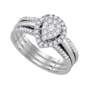 Description 10kt White Gold Women's Round Diamond Teardrop Cluster 3-Piece Bridal Wedding Engagement Ring Band Set 1/2 Cttw Gemstone Details 1/2 Carats total weight Specifications 10kt White Gold _Combined diamond weight of 1/2 carats total weight represents a range of 0.46 - 0.58 cts. t.w.