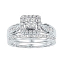 Description 10kt White Gold Women's Round Diamond Square Cluster Bridal Wedding Engagement Ring Band Set 1-1/2 Cttw Gemstone Details 1 & 1/2 Carats total weight Specifications 10kt White Gold _Combined diamond weight of 1 & 1/2 carats total weight represents a range of 1.46 - 1.58 cts. t.w.