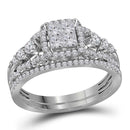 14kt White Gold Women's Princess Diamond Cluster Bridal Wedding Engagement Ring Band Set 1.00 Cttw - FREE Shipping (US/CAN)