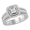 Description 14kt White Gold Women's Princess Diamond Double Halo Bridal Wedding Engagement Ring Band Set 1.00 Cttw Gemstone Details 1.00 Carats total weight Specifications 14kt White Gold _Combined diamond weight of 1.00 carats total weight represents a range of 0.95 - 1.05 cts. t.w.