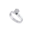 Description 10kt White Gold Women's Round Diamond Cluster Bridal Wedding Engagement Ring Band Set 1/6 Cttw Gemstone Details 1/6 Carats total weight Specifications 10kt White Gold _Combined diamond weight of 1/6 carats total weight represents a range of 0.15 - 0.17 cts. t.w.