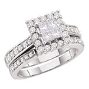 Description 14kt White Gold Women's Princess Diamond Halo Bridal Wedding Engagement Ring Band Set 1-1/2 Cttw Gemstone Details 1 & 1/2 Carats total weight Specifications 14kt White Gold Combined diamond weight of 1 & 1/2 carats total weight represents a range of 1.46 - 1.58 cts. t.w.