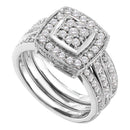Description 14kt White Gold Women's Diamond Cluster 3-Piece Bridal Wedding Engagement Ring Band Set 1.00 Cttw Gemstone Details 1.00 Carats total weight Specifications 14kt White Gold Combined diamond weight of 1.00 carats total weight represents a range of 0.95 - 1.05 cts. t.w.