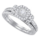 Description 14kt White Gold Women's Round Diamond Bridal Wedding Engagement Ring Band Set 1/2 Cttw Gemstone Details 1/2 Carats total weight --- 1/10 carat center solitaire Specifications 14kt White Gold Combined diamond weight of 1/2 carats total weight represents a range of 0.46 - 0.58 cts. t.w.