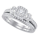 Description 14kt White Gold Women's Round Diamond Floral Halo Bridal Wedding Engagement Ring Band Set 1/2 Cttw Gemstone Details 1/2 Carats total weight Specifications 14kt White Gold Combined diamond weight of 1/2 carats total weight represents a range of 0.46 - 0.58 cts. t.w.