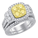 Description 14kt White Gold Women's Round Yellow Diamond Cluster Halo Bridal Wedding Engagement Ring Band Set 2.00 Cttw Gemstone Details 2.00 Carats total weight Specifications 14kt White Gold All colored diamonds are treated to permanently alter their appearance. _Combined diamond weight of 2.00 carats total weight represents a range of 1.95 - 2.05 cts. t.w.